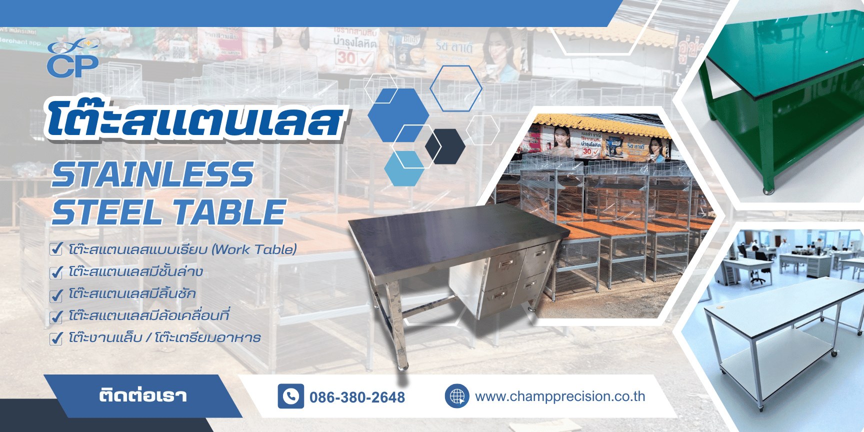 โต๊ะสแตนเลส Stainless Steel Table